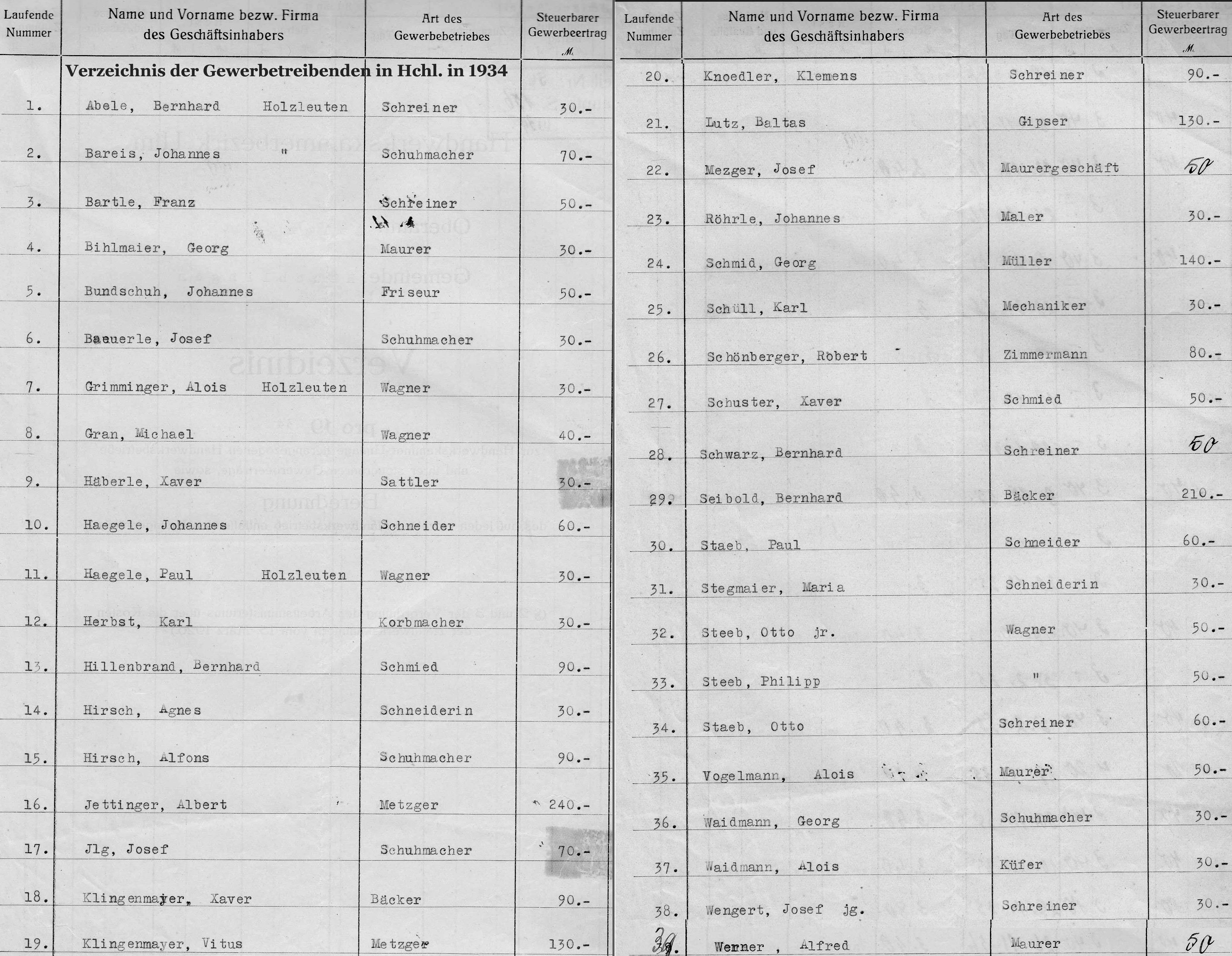 Handwerk und Gewerbe in Hchl. n. d. Gewerbekataster
