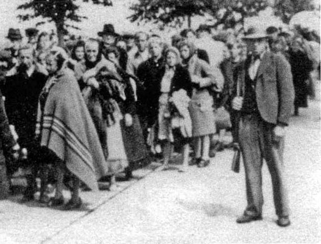 und Schikanen im Sammellager, in Gruppen zu je 30 Personen in die