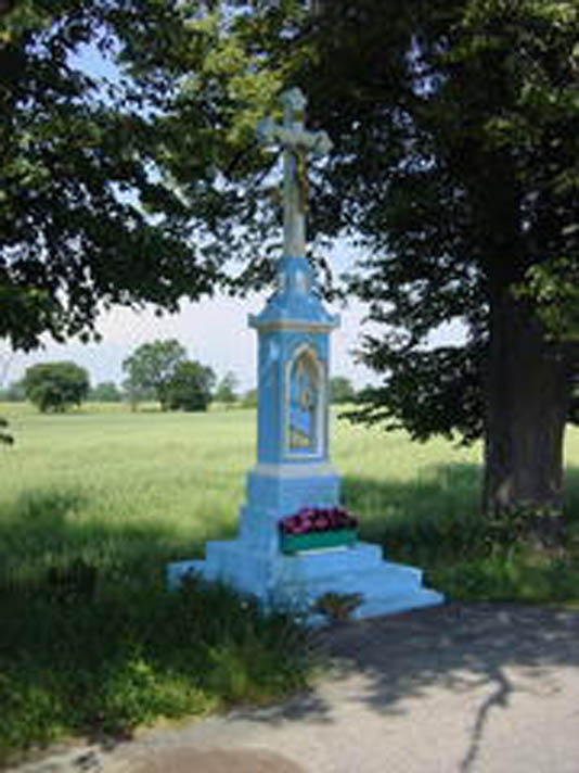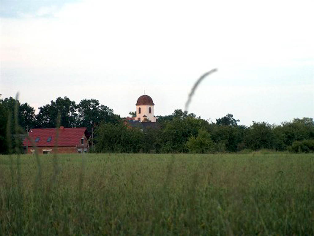 Kirche von Alt Cosel von den Feldern aus betrachtet - Qu. aus Web- Beitrag Ein Feldkreuz bei Alt Cosel - Qu. aus Web-Beitrag