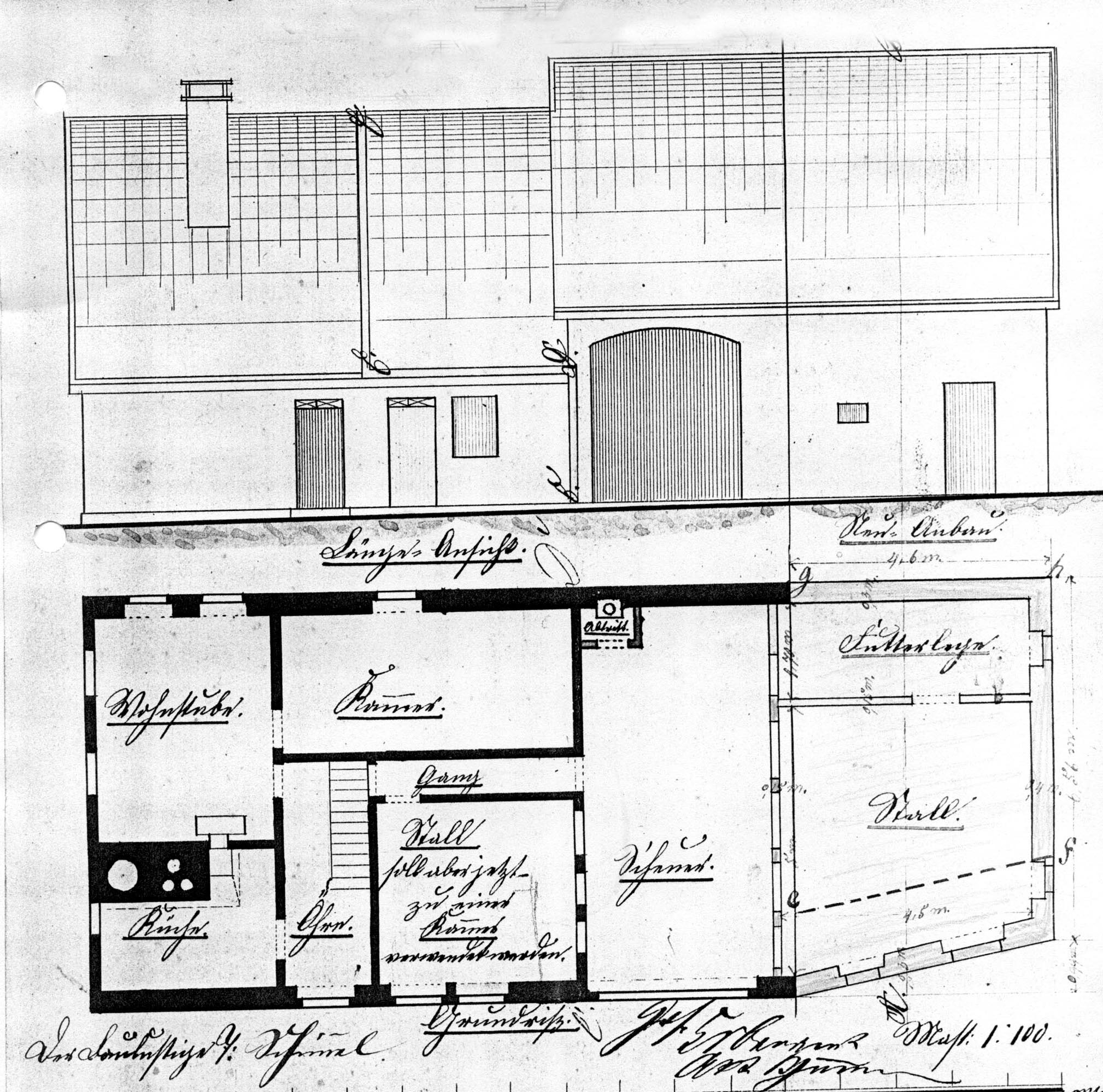 1873:  Wohnhaus u. Scheuer, Hofraum, Backofen