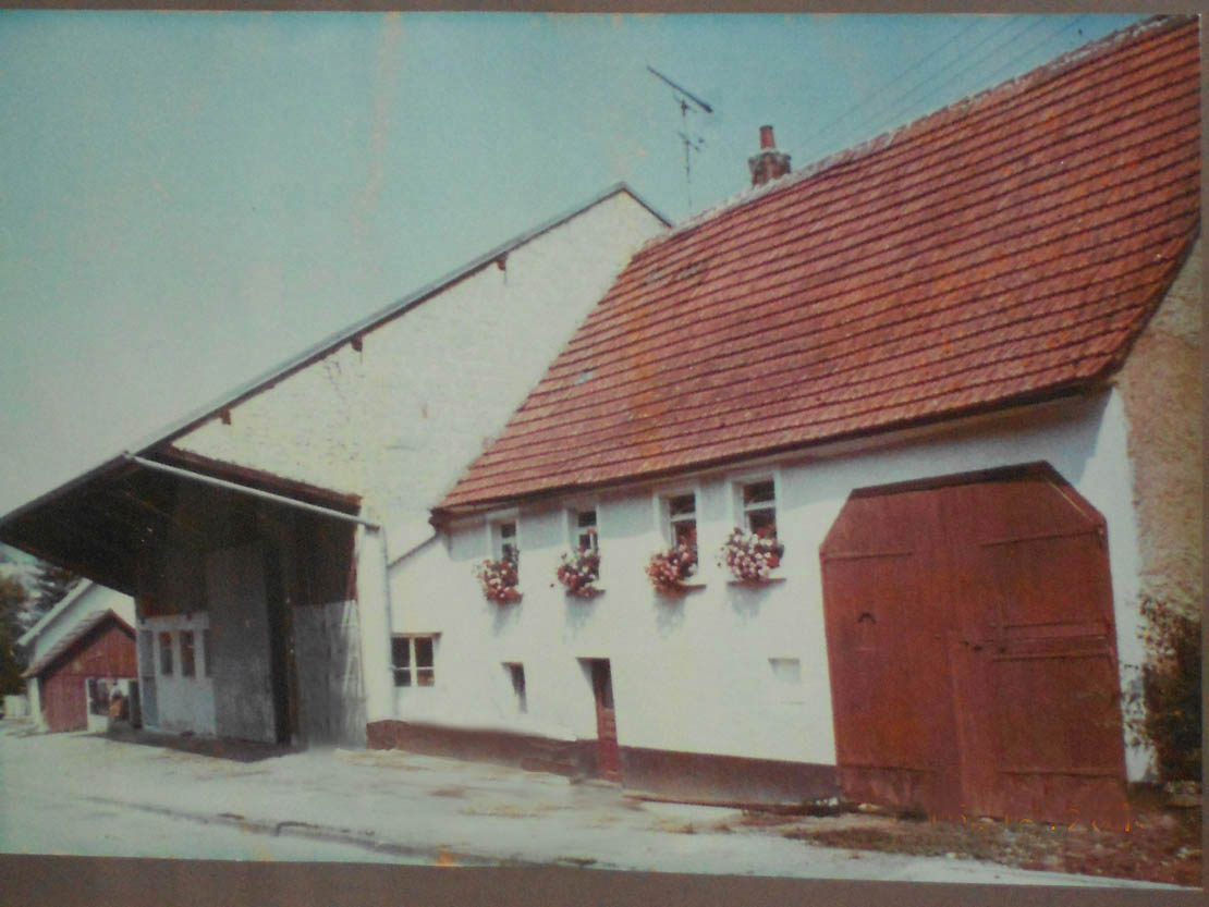zusammen für die Summe von 1868 - 1877 (1927): Georg Schierle, Sohn des Friedrich, * 1837, +1877, oo 1868 Maria Pfisterer v. Oberböbingen, * 1846, + 1927. 1919 - 1952: Johann Georg Schierle, deren Sohn, * 1871, + 1933, oo 1919 Maria Hieber von Reichertshofen, * 1886, + 1964 1952: Josef Ehmann, *oo 1952 Klara Schierle, die Tochter d. Joh. Georg. u. d. Maria, geb. Hieber. Dat.: Josef Ehmann, *1916, +1994 Josef Ehmann, umgangsspr. der "Boier`s Seff", kommt vom Büschelhof bei Berlichingen im Unterland. Nach seiner Heirat erstellt er neben dem Wohnhaus ein modernes Wirtschaftsgebäude mit Stall und Scheunenvordach.