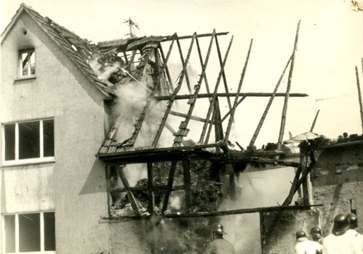 So. d. 25.Juni 1961, um 14°° Uhr, brannte der mittl. Scheunenteil