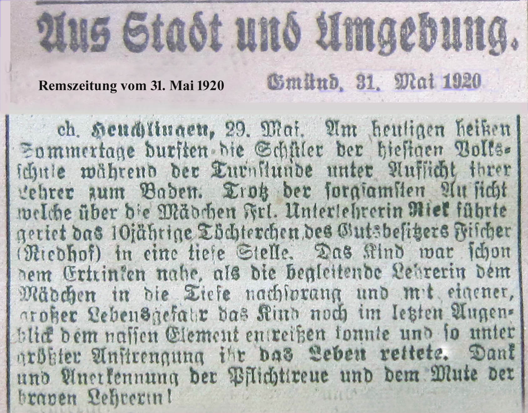 wurde Raisch als Hauptlehrer nach Jagstzell, O/A Ellw. berufen. .... - 1931: Funk Felizitas, Lehrerin, verlässt am 24.7. 1931 Schule u. Ort Hchl. nach Steig, Gd. Heinstetten, zur Übernahme ihrer neuen Lehrstelle. Wann F. Funk in Hchl. ihren Dienst antrat ist nicht festgehalten. .... - 1931: Haas Andreas, Lehrer, verlässt ebenfalls zum 24.7. 1931 den Schulort Hchl. nach Großalledspann zur Übernahme der neuen Lehrstelle. Wann A. Haas in Hchl. den Schuldienst antrat ist nicht festgehalten. 1931 - 1932: Weingärtner Franz, Lehrer. Weingärtner verlässt 1932 die Schule in Heuchlingen und übernimmt eine Schulstelle in Hüttlingen. Wann er in Hchl. den Schuldienst antrat ist nicht festgehalten. (Frz. W. ist in Bieningen geboren) 1932 - 1935: Johann Kleiner, Lehrer.