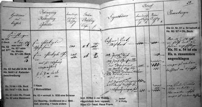 Form noch nicht und war Teil v. Hs. 52 Die Gebäudebeschreibung im Gemeinde - Kataster von 1827 sind wohl auch