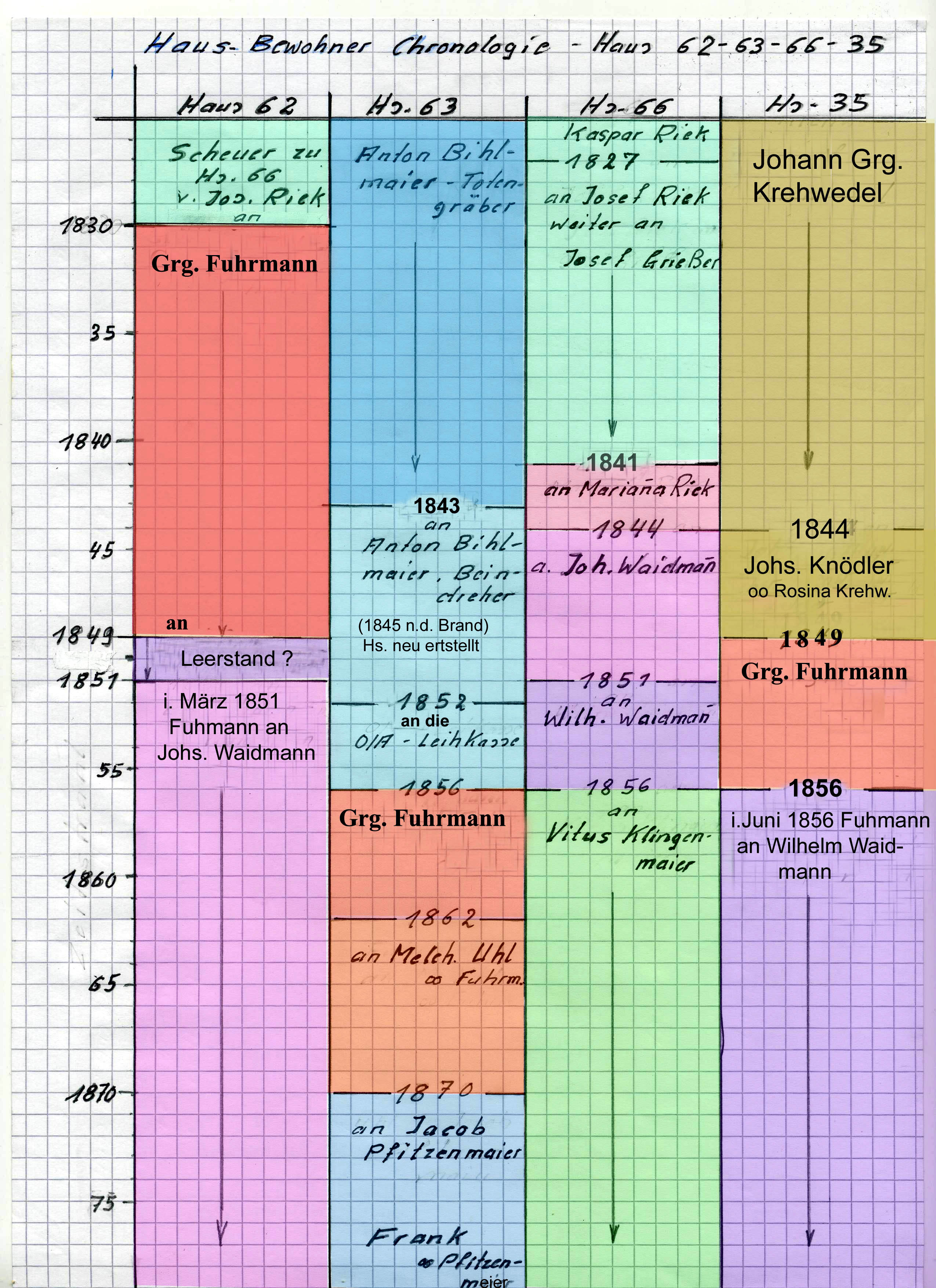 Verkaufsdaten f. d. Hs. 62 ersichtlich. 1851 - 1872: Johann Waidmann, Bürger und Maurer, * 1818, 1890, oo