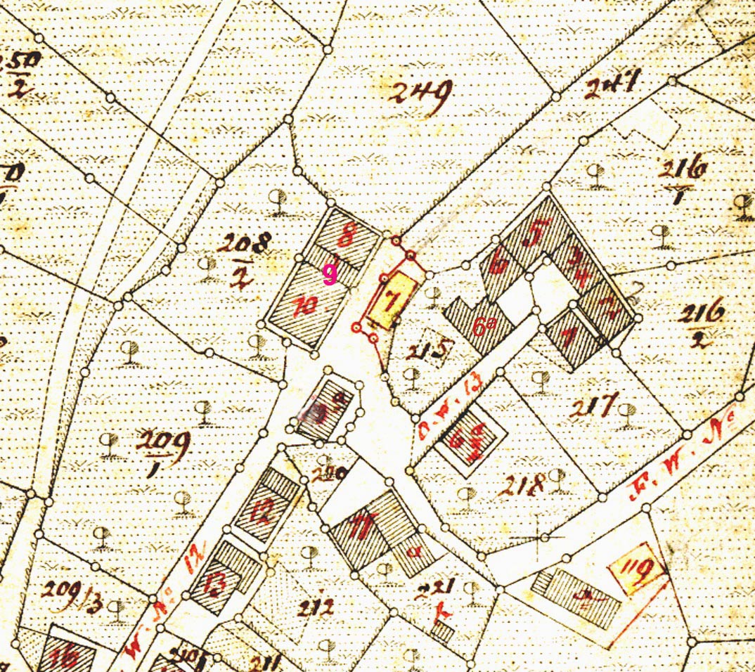 9 ist nach Interpretation des Kataster- Textes von 1827 der mittlere