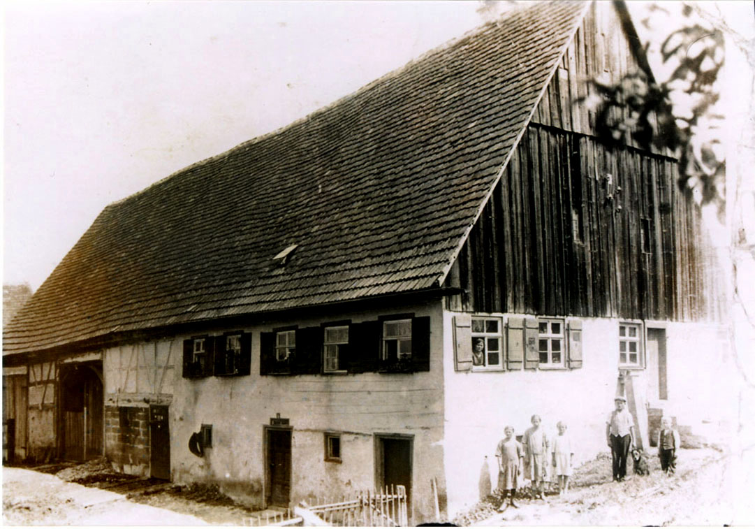 u.a. Gottlieb, * 1832, Alois u. Anton. 5. Gottlieb Bihr, * 2.11.1832, + 15.10.1929, oo in U.böbingen am 24.11.1863 Theresia Bihr v. U. böbingen, * 18.11.1840, + 2.9.1922. | 8 Kinder, u.a. Bernhard, * 1878. 6. Bernhard Bihr, * 5.11.1878, + 8.5.1968, oo 18.6.1901 Rosina Wiedmann v. Fachsenfeld, * 3.2.1875, + 17.9.1906. II. oo a. 26.11.1907 m. Maria Sorg, v. Holzl., geb. a. 24.8.1879, + 11.5.1966. Aus der I. E. kommen 5, aus d. II. Ehe 8 Kinder, u.a. Albert aus II. E. * 1920. 7. Albert Bihr, * 10.5.1920, + 2007, oo 7.1.1947 Theresia Beirle a.d. Haus 11 "Wannen-manns", * 7.5.1921. | 1 Tochter, * 10.3.1947. Albert Bihr gibt 1961 den Hof auf und zieht nach Mögglingen. Wissenswertes: Im Frühj. 1961 wird das Vieh und Inventar des Hofes versteigert. Den Hof, samt Güter, bekommt Anton Lutz jun., der Sohn des Gipsers Anton Lutz u. der Johanna , geb. Bihr in Hchl. Als Gegenleistung erstellt Anton Lutz sen. (Jg. 1911), den Eheleuten Albert Bihr in Mögglingen ein neues Haus. Die Versteigerung u. ihre Ergebnisse wurden anschließend in der Gaststätte z. Hirsch i. Hlzl. ausgiebig besprochen. Der Hirschwirt meinte damals: "wia° ka° ma° no für a Häusle en ganz°a Hof hergeba°. Qu. Hermann Stegm. i. So. 2007. zurück z. Areal .................... weiter zu Haus 19 |