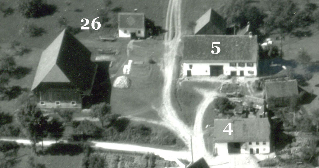 Ziegeldach, 2 Schweineställe. Bewohnerchronik zusammengefasst nach den Kaufbucheinträgen Alois Uhl erbaut 1831 das Haus Nr. 4 ½ (5) - (n. Deutung der Kaufbucheinträge) 1831 - 1835: Alois Uhl, Schneidermeister in Hlzl., *1792, + 1865. Im Dez. 1835 verkauft Alois Uhl an Josef Wengert ein 2 stockigtes Wohnhaus mit Scheuer unter 1 Dach für 3591 fl. dazu 1 ½ viertl. Garten, 2 Morgen Wiesen und ~11 Jauch. Ackerfeld u. 1 1/2 Mrg. Bürgerteile. Kaufvermerk: vorsteh. Liegenschaft ist an mehreren Posten verpfändet. Verkauf ist nur gültig, wenn die Schulden sofort an Ort u. Stelle entrichtet werden. Dann: auf den ehem. Laknerschen Teilen lasten noch diverse Fuhr- und Handfrohndienste 1835