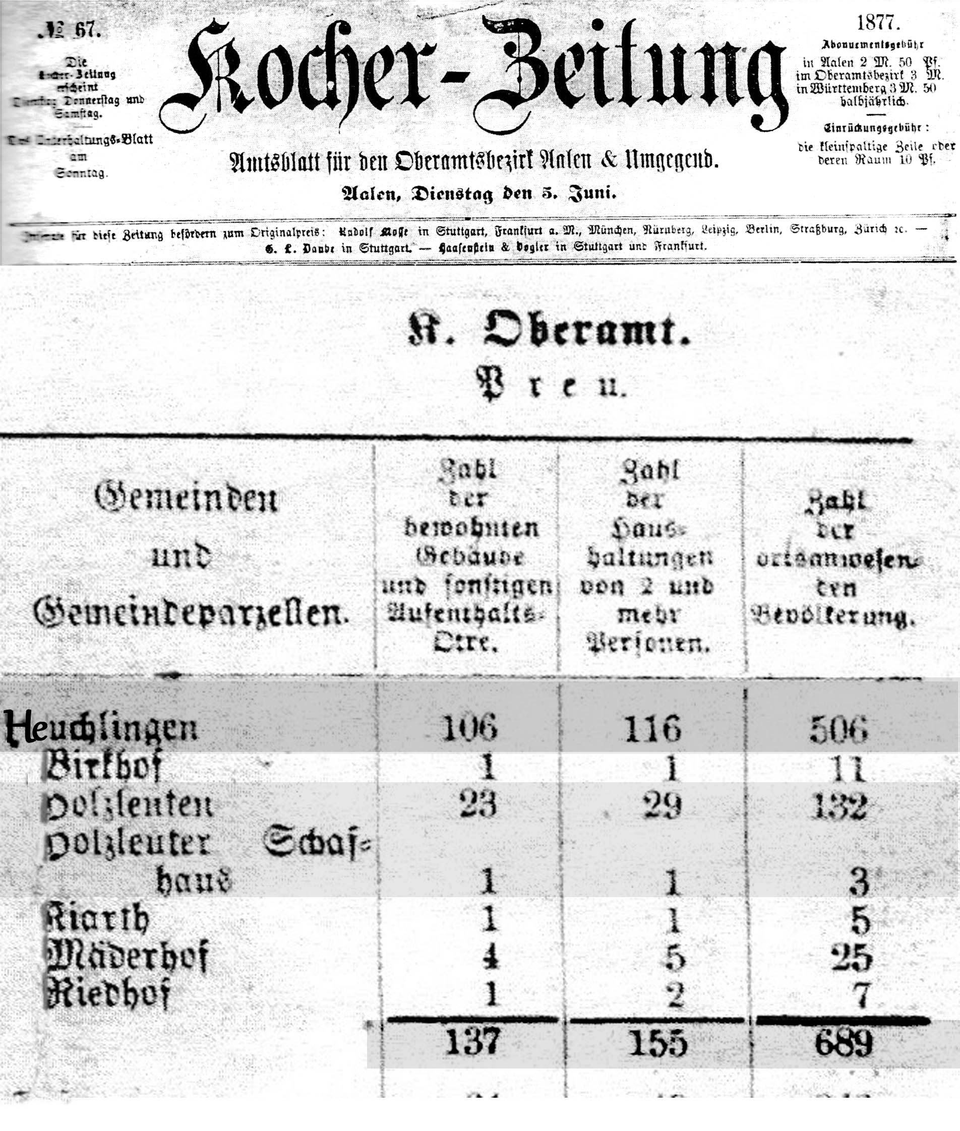 Quelle: Kocherzeitung- Amtsblatt f.d.Oberamtsbezirk Aalen u. U.