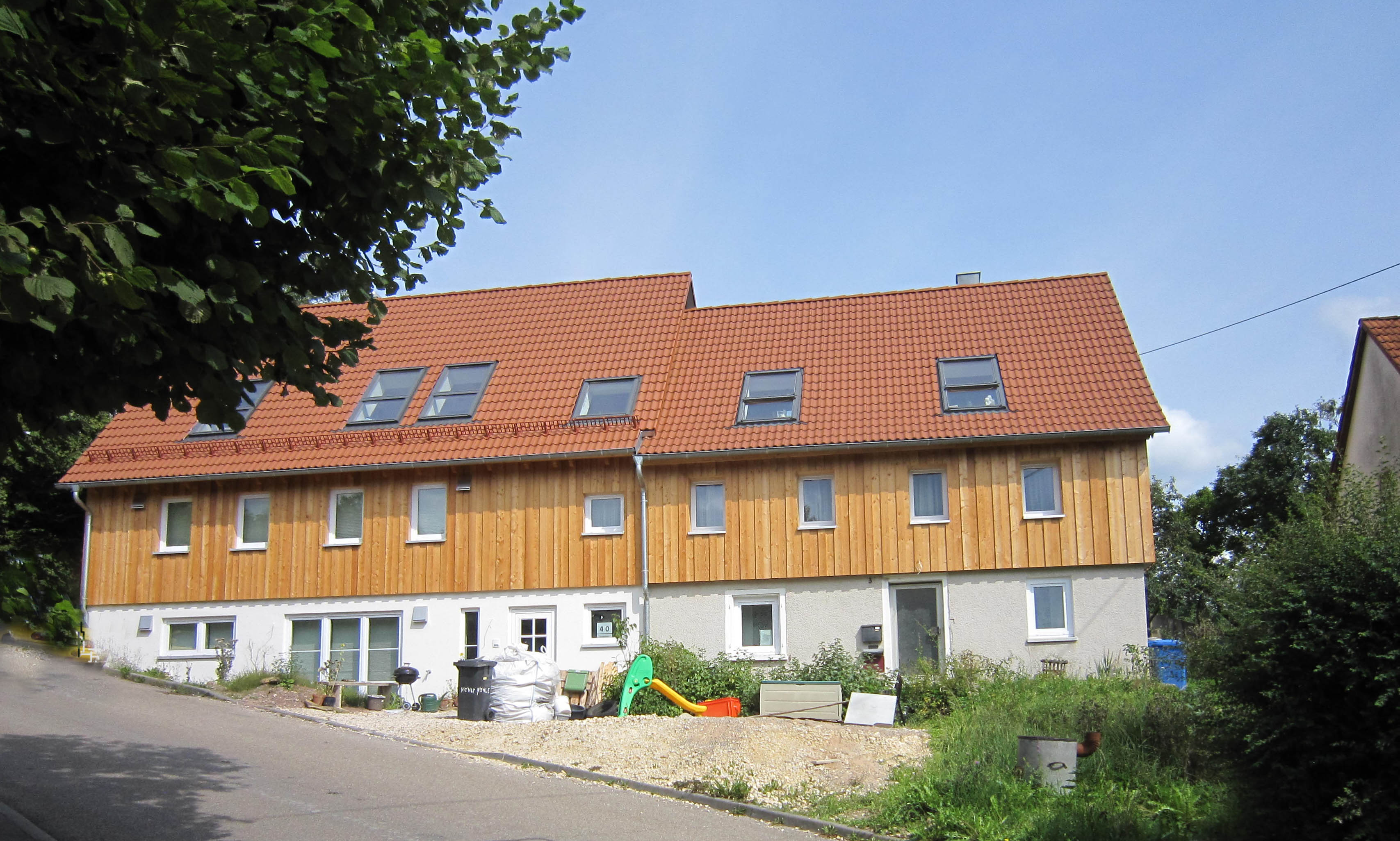 eine neuer Wohnhaus-teil an den alten Wohnhausteil angebaut. Der alte