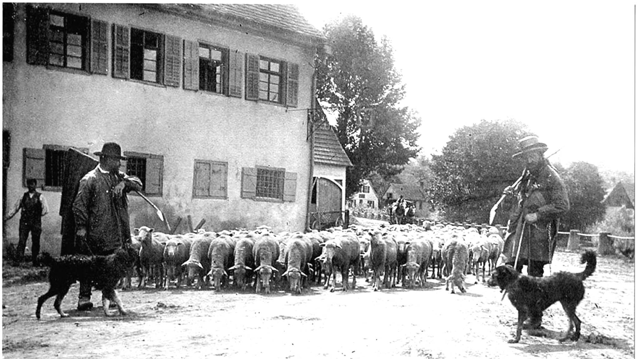 Sodann fuhr er mit seiner Herde über die umliegenden Stoppel