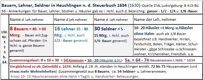 8 Bauern, 16 Lehner (Löhner)u. 30 Seldner (Söldner), dazu die Angabe der Namen von