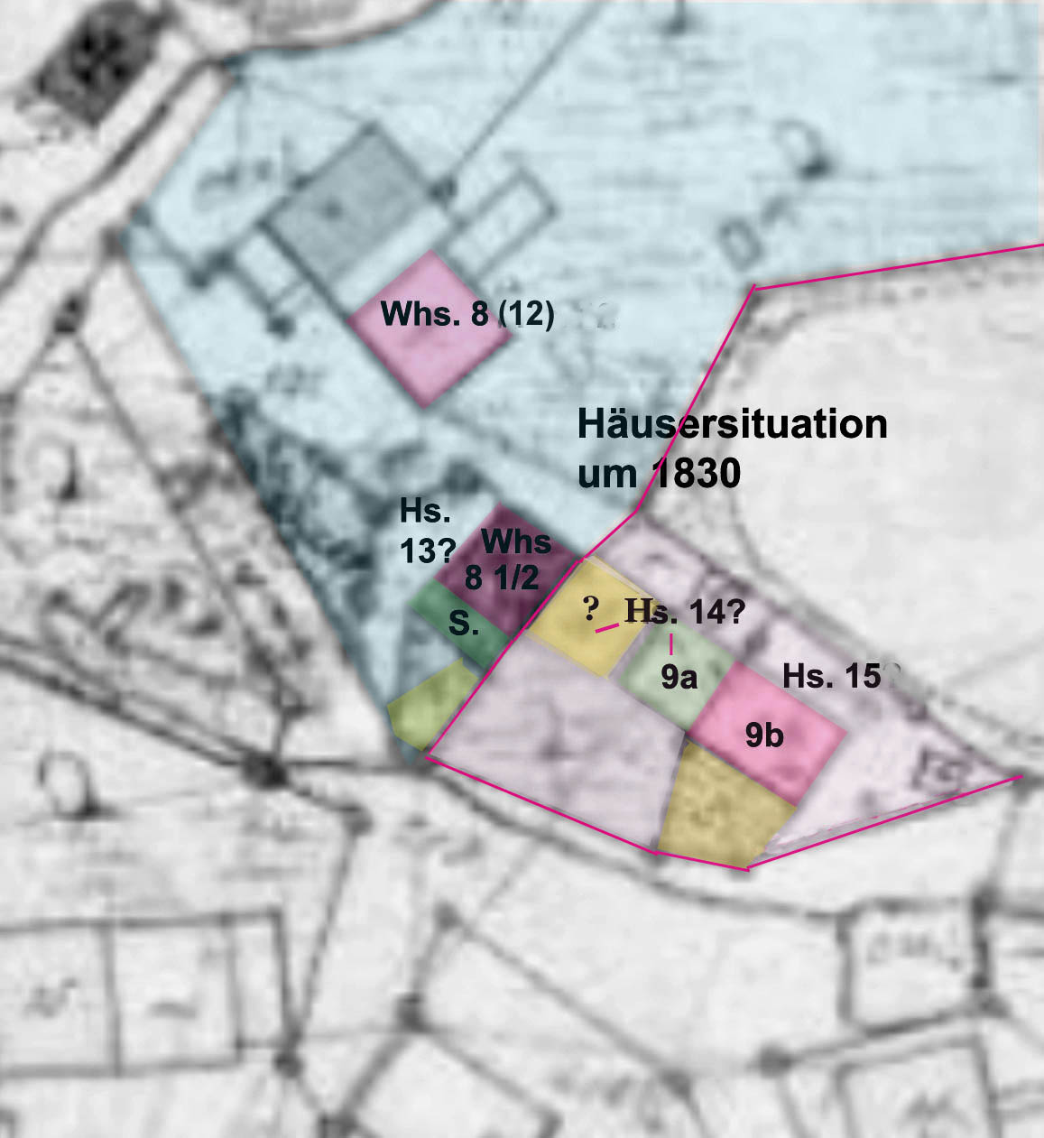 Gebäude-situation zur Zeit der Landesvermessung (ab 1830),