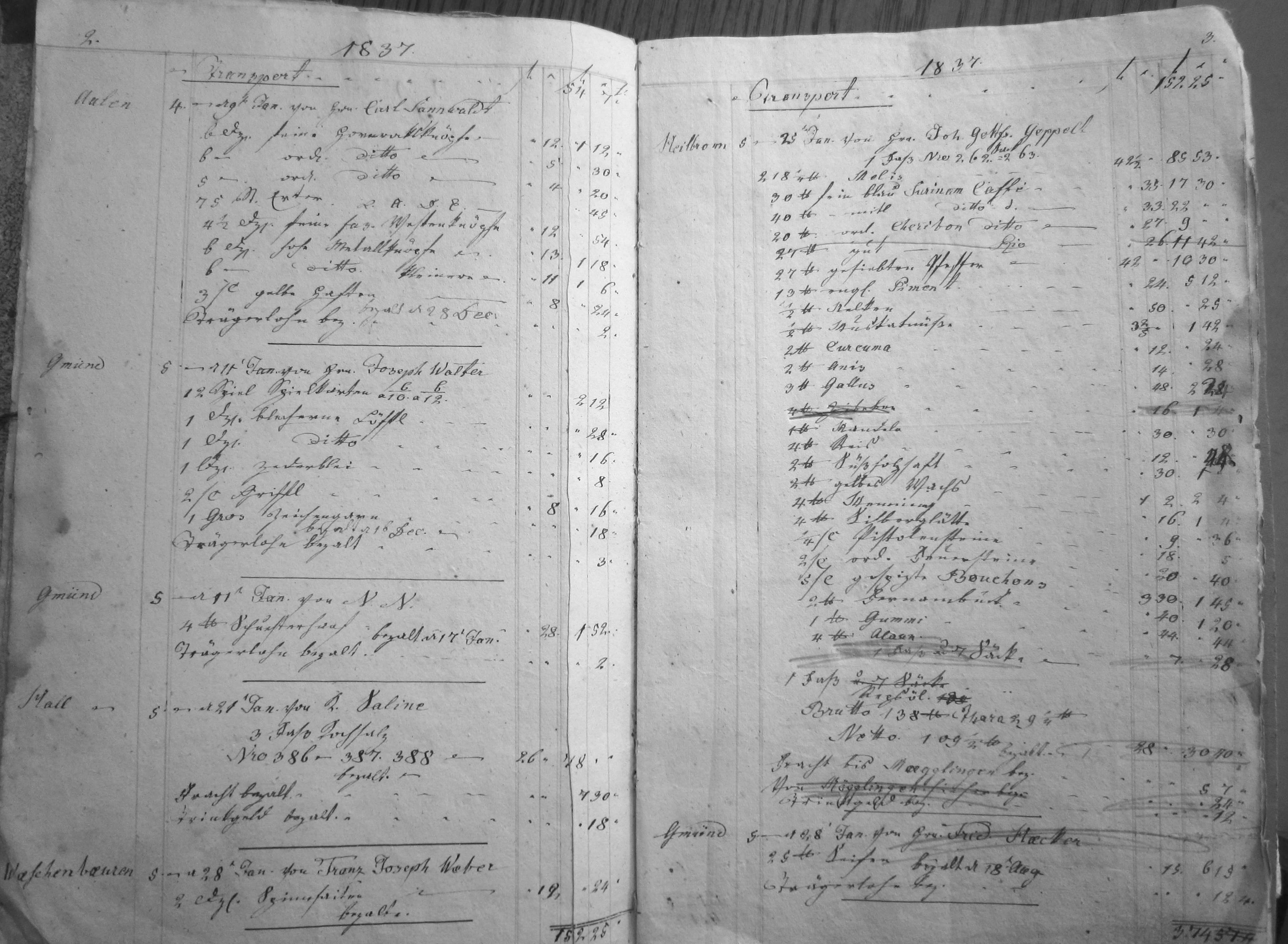 aus dem Warenbuch 1837 -1849 - hier 1837 gekürzt dargestellt. |
