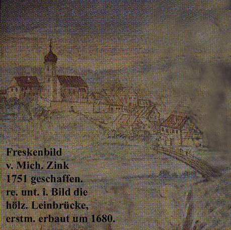 die erste Holzbrücke über die Lein für Personen, den Viehtrieb