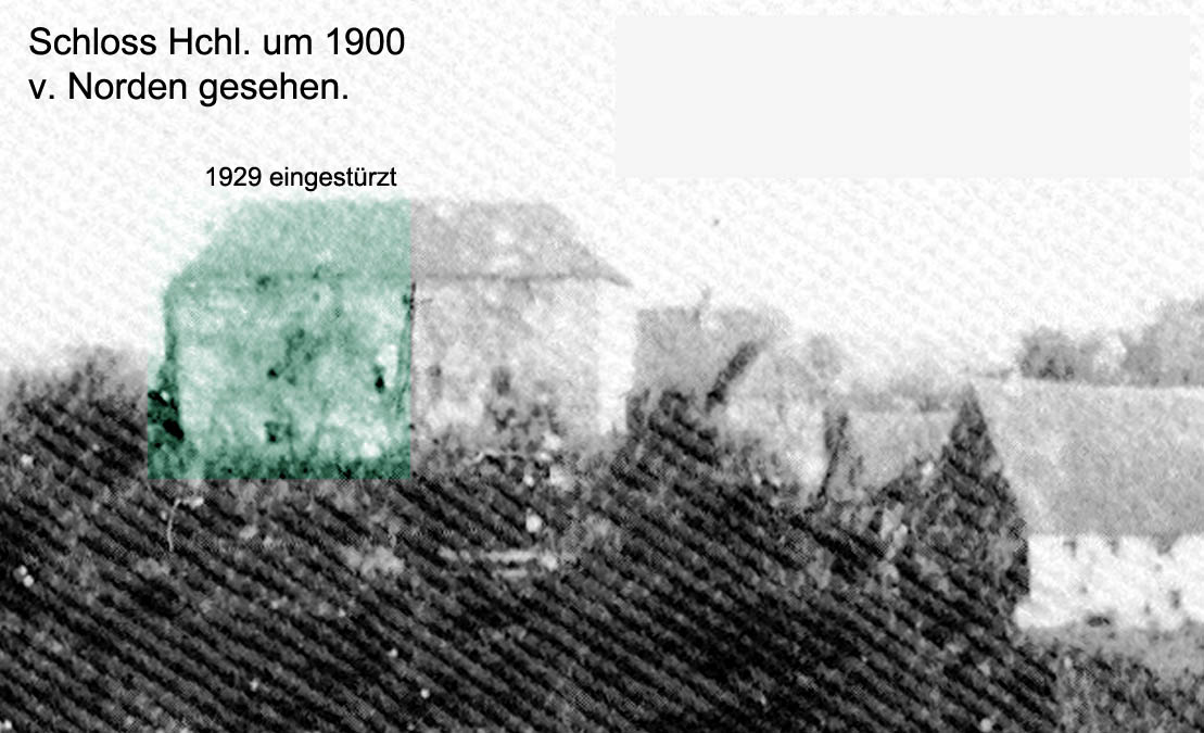 Wohl um die erste Juliwoche 1929 stürzt der ganze Gebäudeteil Nr. 5 des Hchl. Schlosses in sich zusammen. Dabei brach