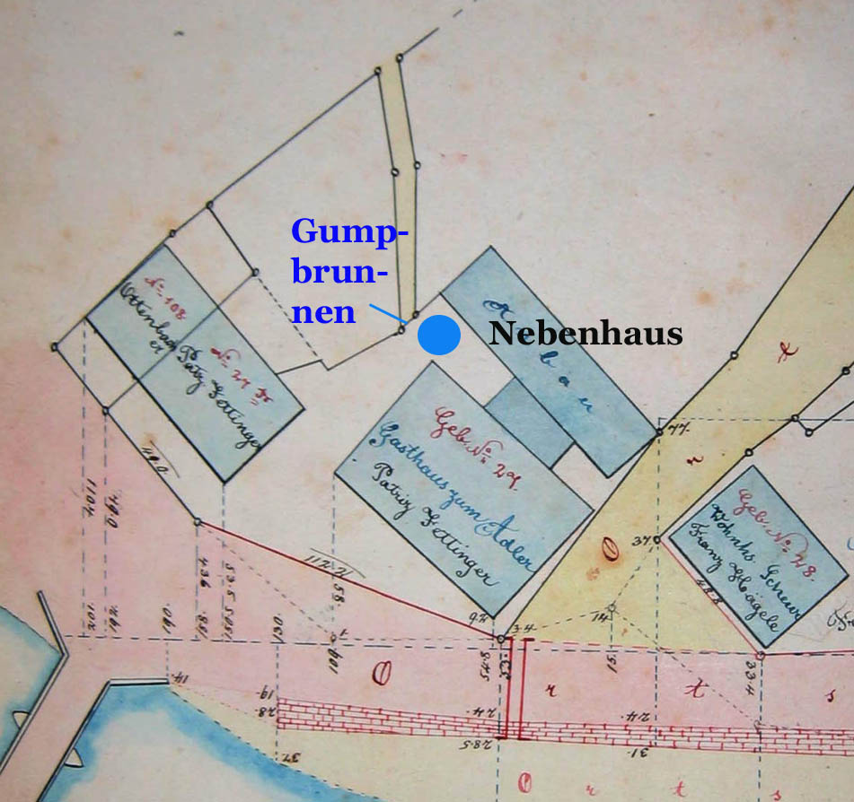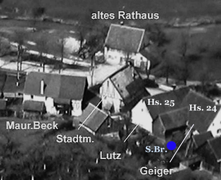Haidner, Bäcker hier, eine 2 stockigte Scheuer. ... < Brunnen beim alten Waibel-Anwesen (Hs. Nr. 101), an der Schechinger Straße.