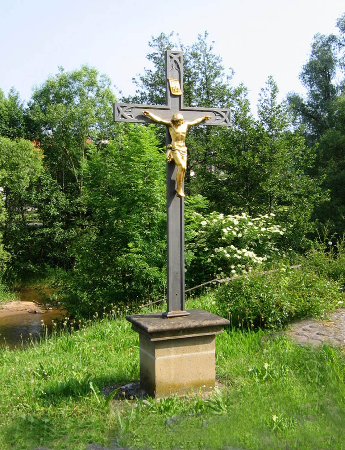 Das gußeiserne Feldkreuz mit dem Kreuzherrgott ist ein Geschenk