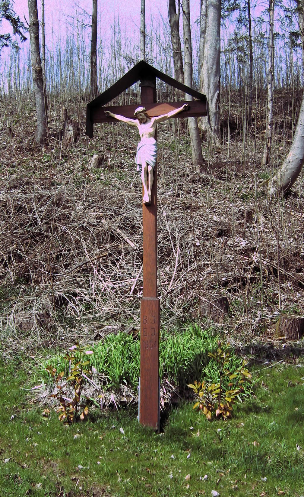 Der Kreuzherrgott ( kein Holz ) wurde v. Kaiser aus Iggingen gefertigt, der Kreuzstamm v. Felix Hägele v. Lautern.