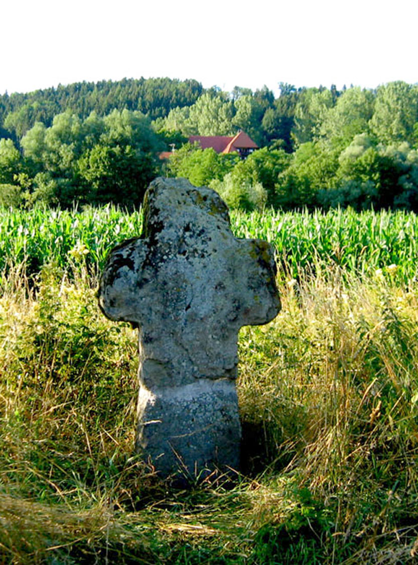 Sühnekreuz in den Kocherwiesen, 300 m unterhalb v. Ortsrand Fachsenf. / Waiblingen