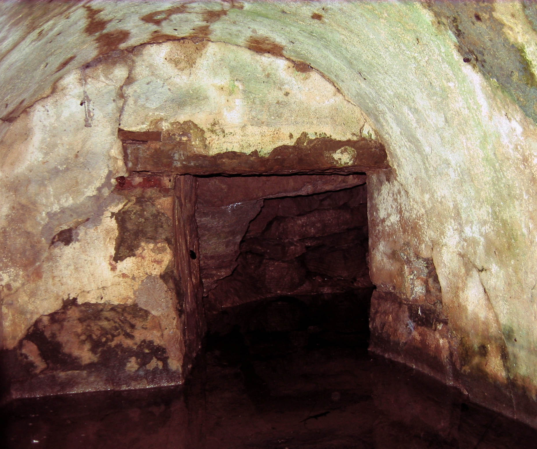 der Quelle ein ca. 80 cm breiter und hoher Zulaufschacht.
