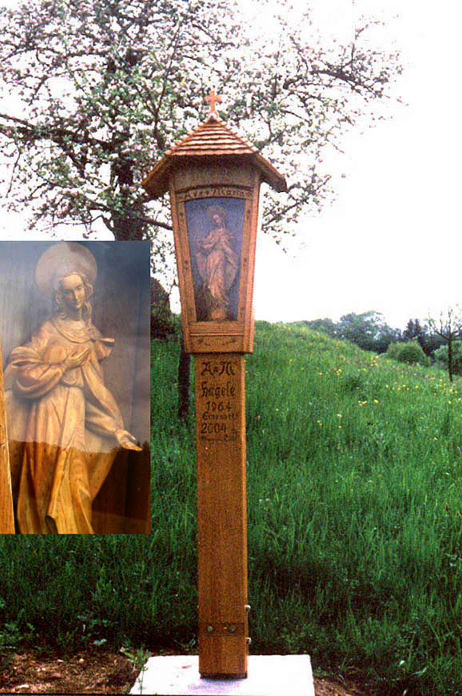 heute in der Einfahrt zum Wohnhaus von Erich Waidmann. Der Bildstock