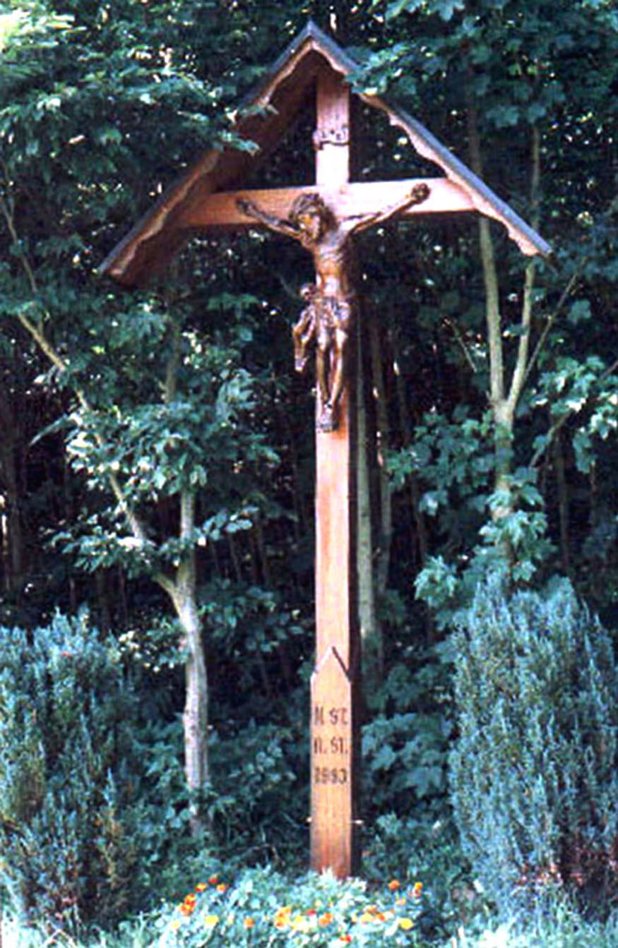 Einzelheiten: Der Kreuzstamm wurde von Schreinermeister Albert Knödler aus Eichenholz ( ohne Kern) gefertigt.