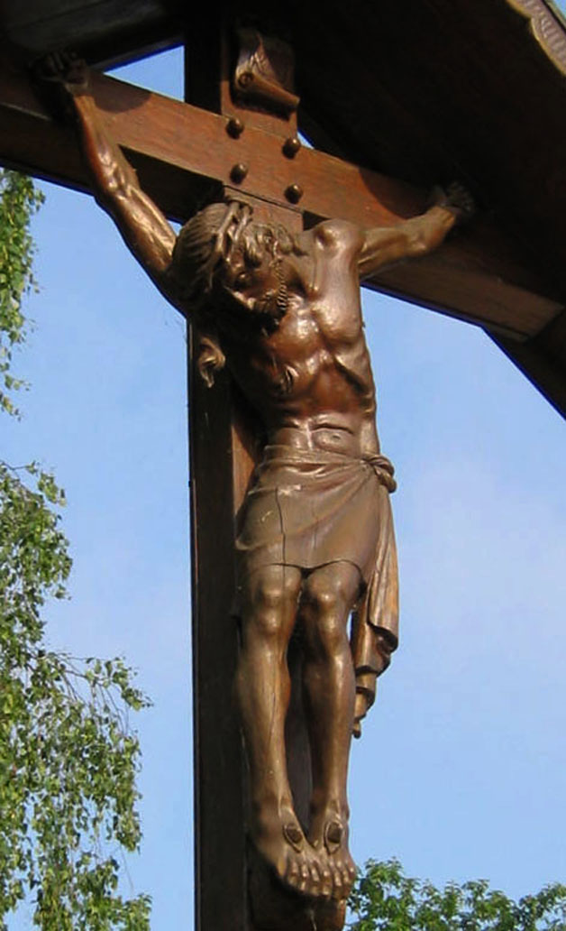 Der Kreuzstamm und Kreuzherrgott wurde vom Bildhauer Friedrich Baumgärtner aus Untergröningen gefertigt