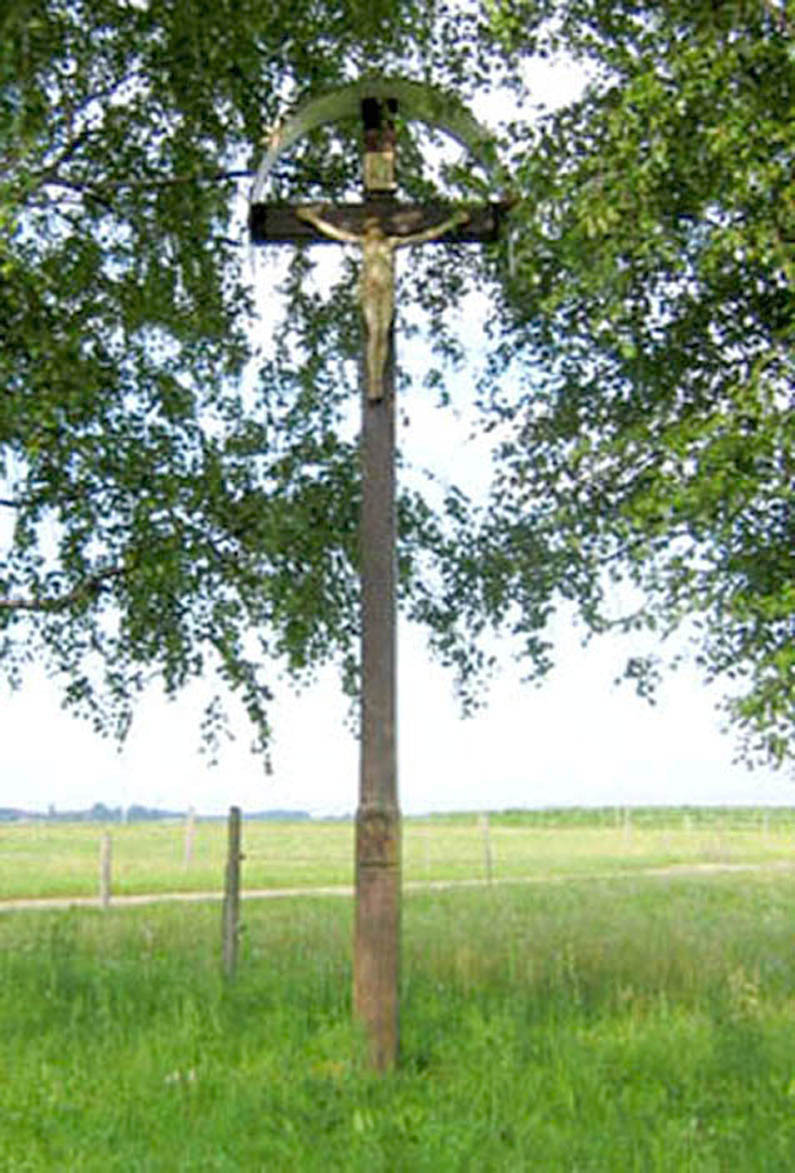 Hägeles Kreuz in 2005/2009 Kreuzstamm Inschrift: "Gott ist groß in der Natur, willst du Ihn noch größer sehn, bleib unterm Kreuze stehn."