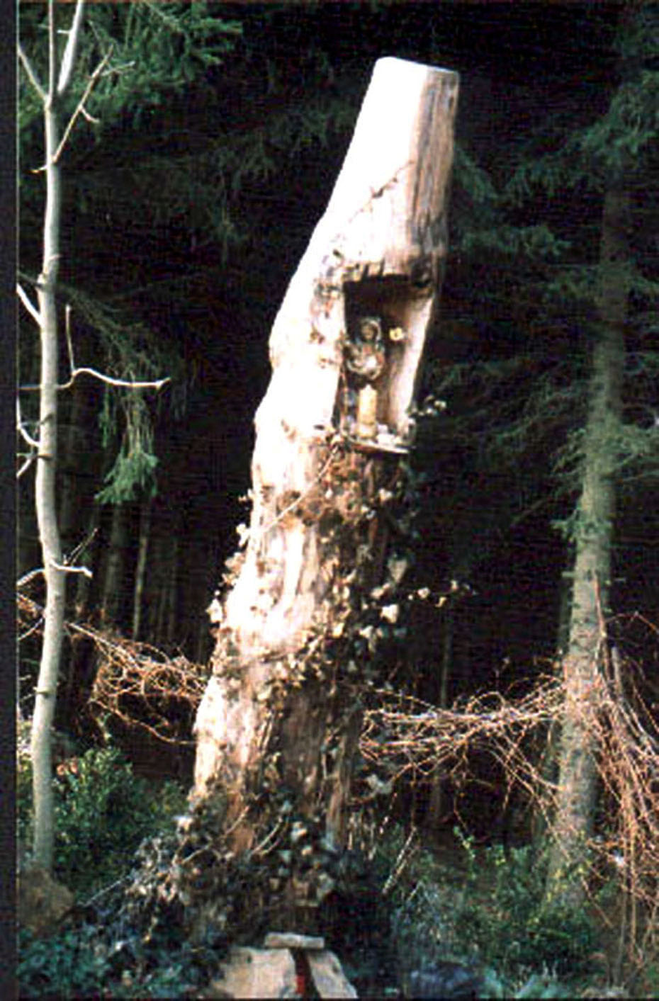 Bildstock aus Baumstumpf ausgearbeitet. Zustand 2002