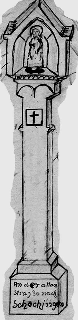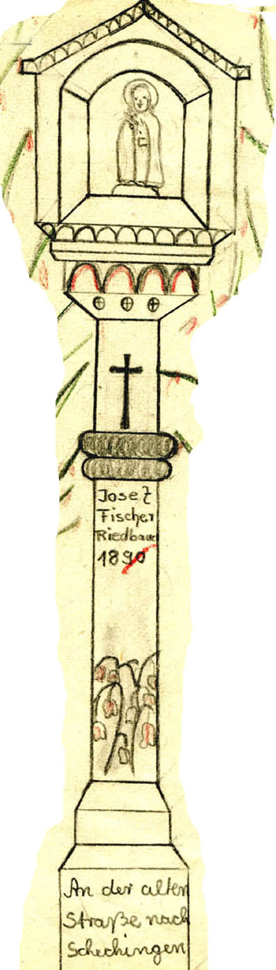 Fischer gesetzte Bildstock, der an der Stelle steht, wo ein feiges Subjekt