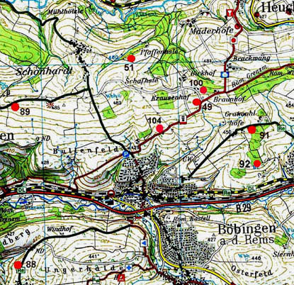 Außerhalb der Gemarkung liegende Objekte südlich von Heuchlingen gelegen.