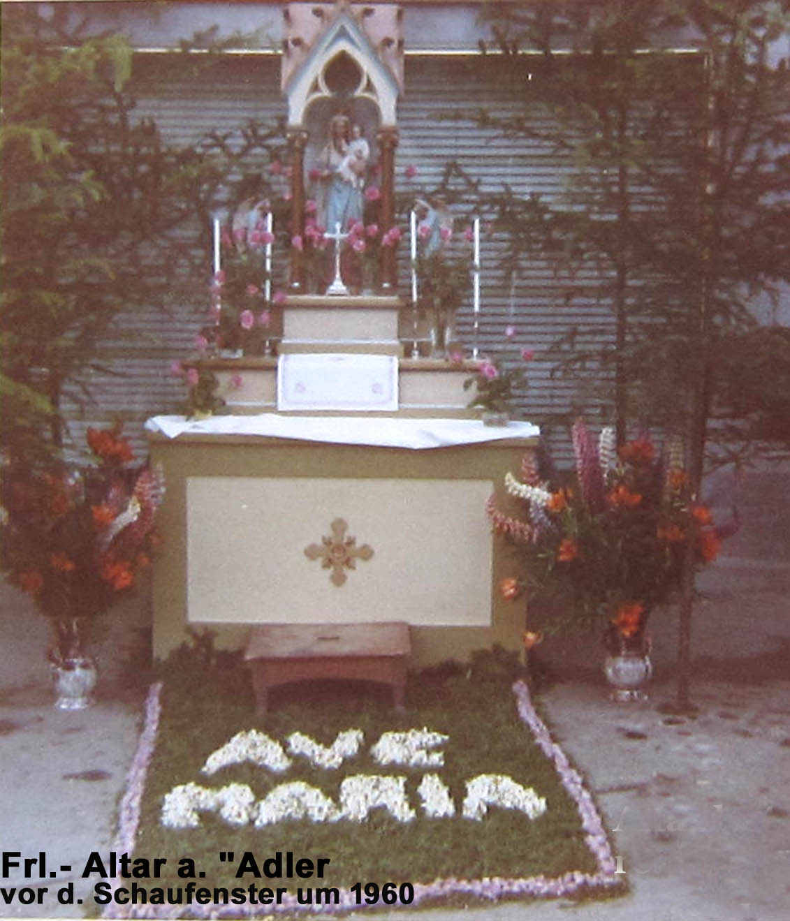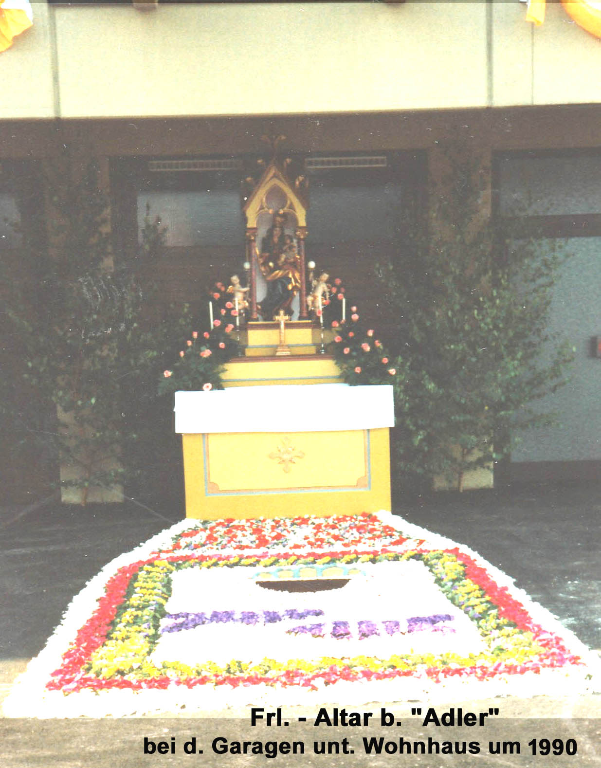 Fronl. - Altarbild vor den Garagen unterm neuen Wohnhaus Jettinger um 1990 |
