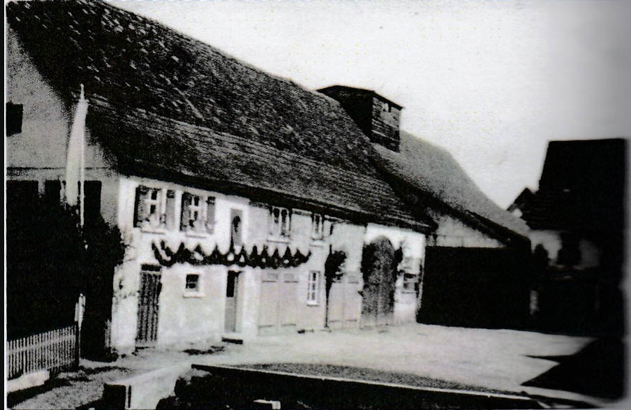 *Eine mit Doppelgirlanden geschmückte Hausfront anlässlich des Fronleichnam-Festes in Dalkingen . . . *Qu.: "Dalkinger und Weiler Dorfgeschichten" v. E. Ebert.
