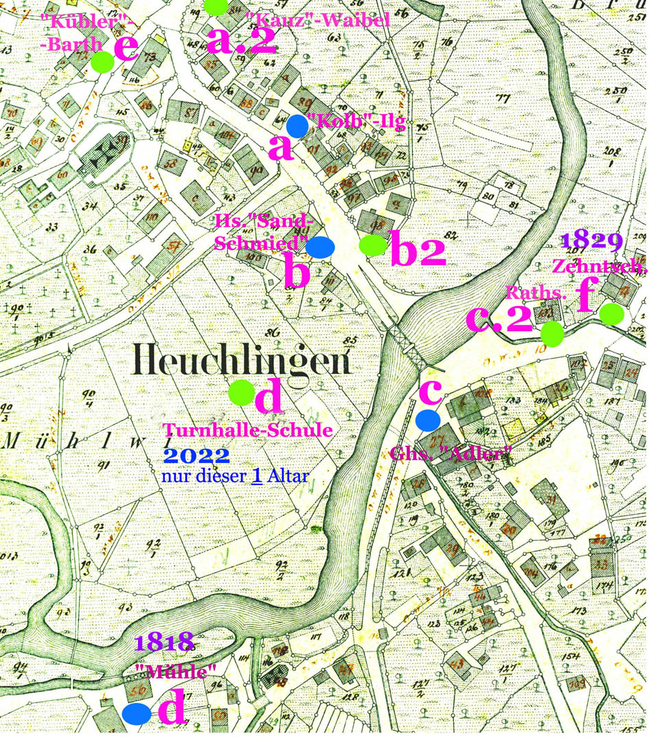 dabei auch erstmals die Standorte der 4 Fronleichnamsaltäre