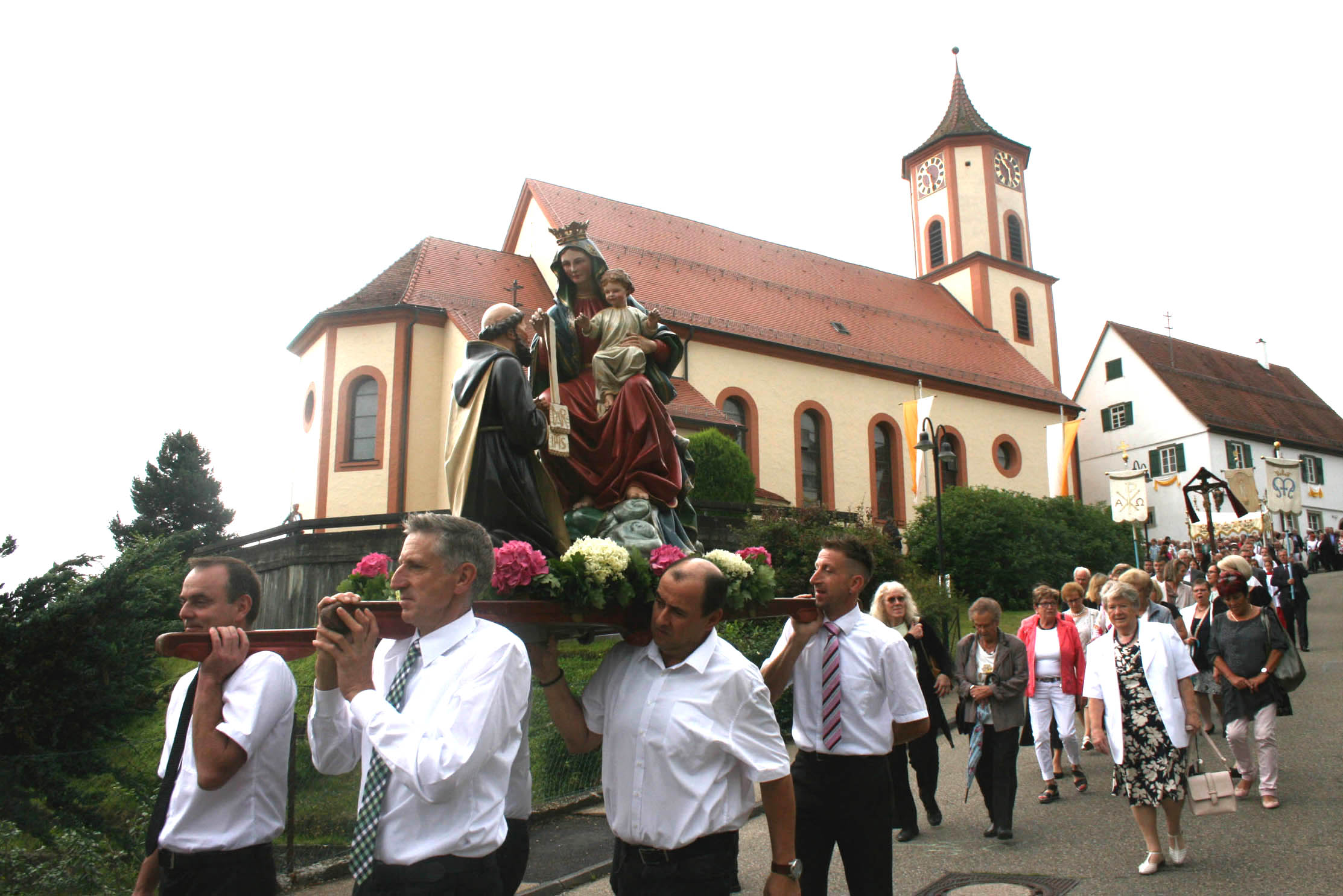 Das Bild entstand 2018 hinter den Mdonnenträgern geht der Kirchenchor, hier erstmals mit einer Baß-Sängerin ein Zeichen der Frauen - und Männer - Emantipation?