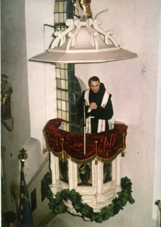 einem Ordenspater, begleitet durch den Ortspfarrer und weiteren Geistlichen,